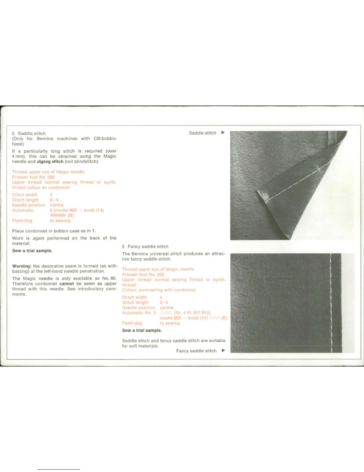 Bernina 900 - Saddle Stitch and Fancy Saddle Stitch; Saddle Stitch Technique; Fancy Saddle Stitch Technique