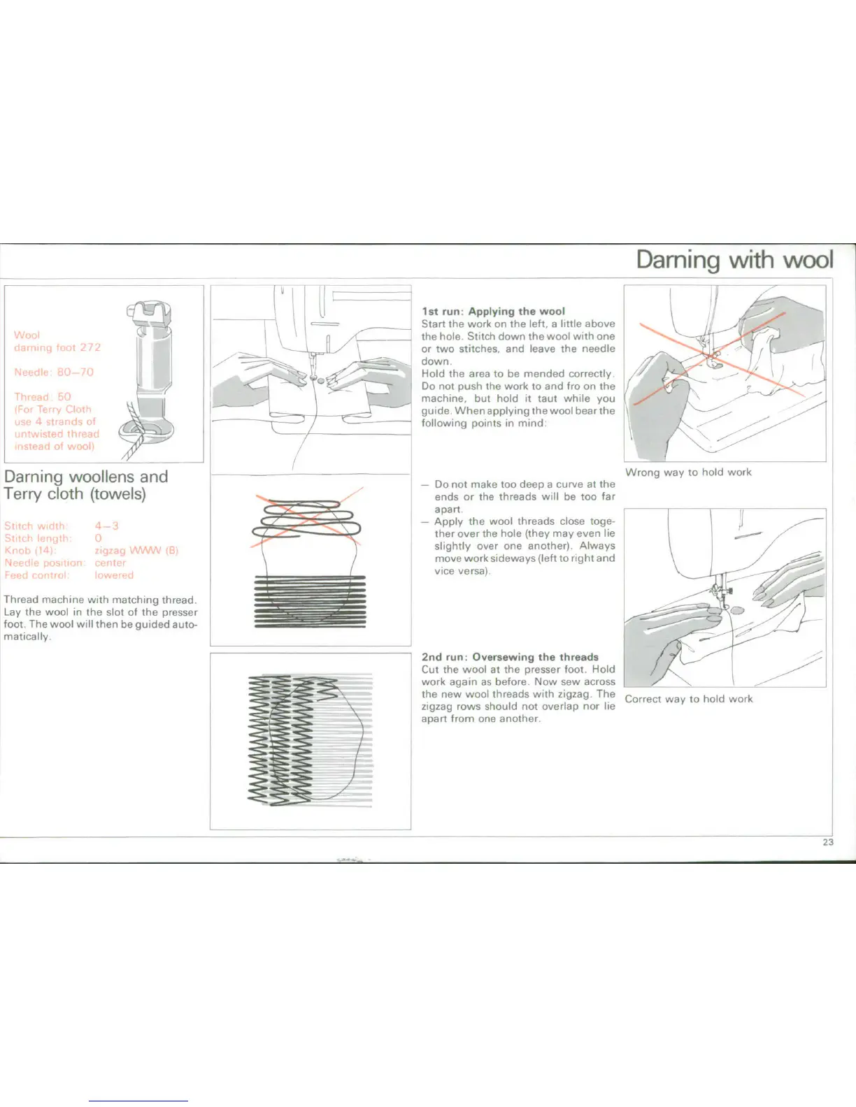 Bernina 900 - Darning with Wool; Darning Woollens and Terry Cloth; Applying the Wool (1 st Run); Oversewing Threads (2 nd Run)