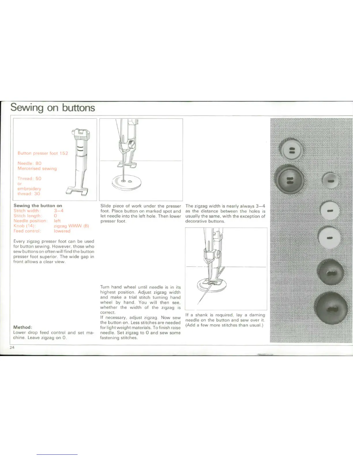 Bernina 900 - Sewing on Buttons; Button Sewing Settings; Button Sewing Method; Button Shank Creation