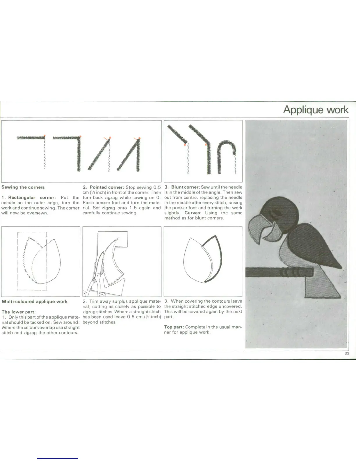 Bernina 900 - Appliqué Work: Sewing Corners; Sewing Rectangular Corners; Sewing Pointed Corners; Sewing Blunt Corners