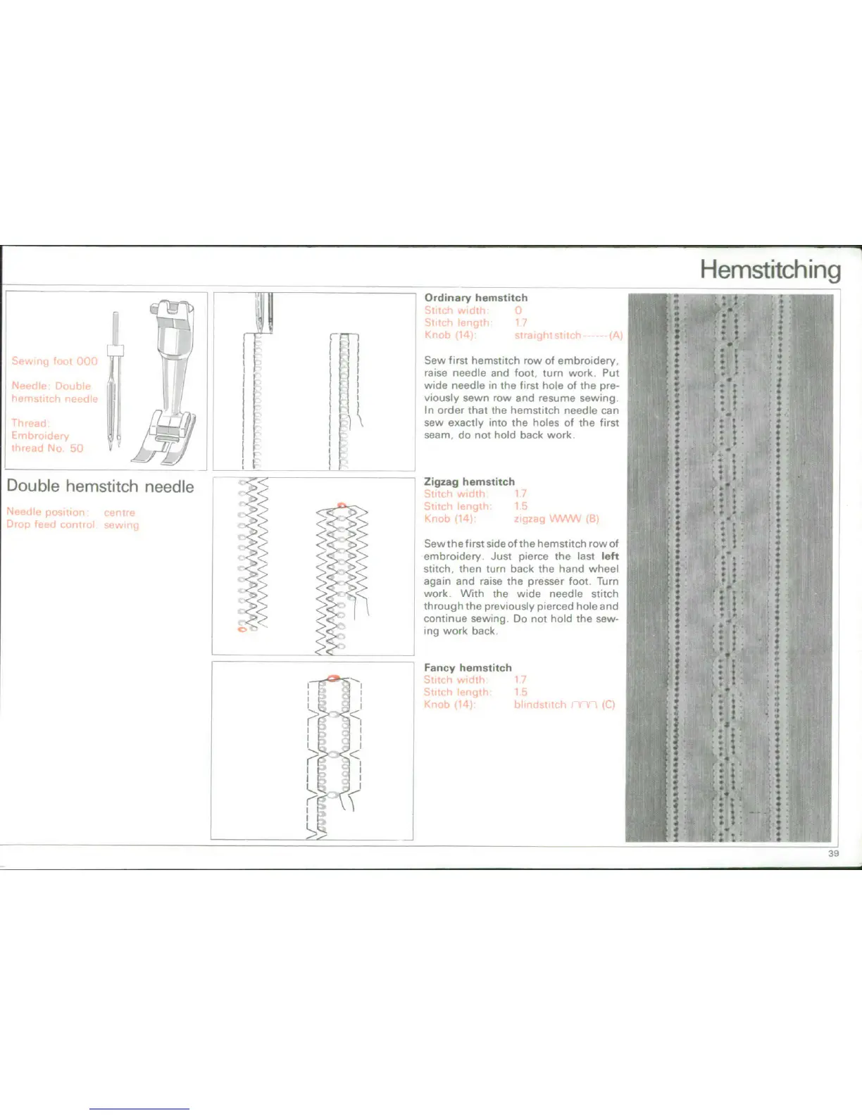 Bernina 900 - Hemstitching Variations; Ordinary Hemstitch; Zigzag Hemstitch; Fancy Hemstitch