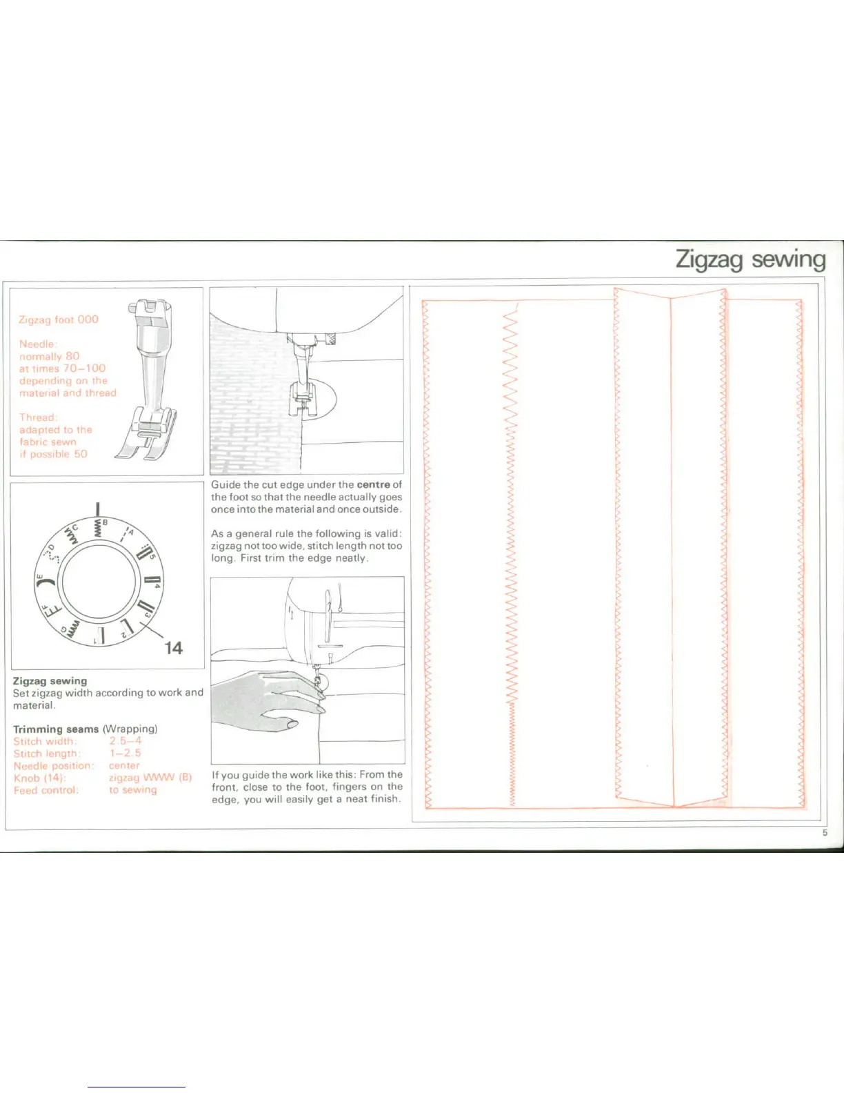 Bernina 900 - Zigzag Sewing Techniques; Zigzag Sewing Setup; Trimming Seams (Wrapping); Material Guiding for Zigzag