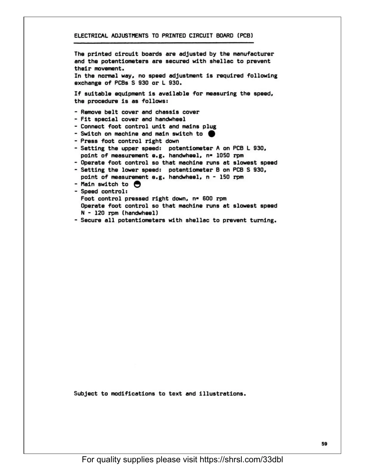 Bernina 931 - Electrical Adjustments to Printed Circuit Board (PCB)