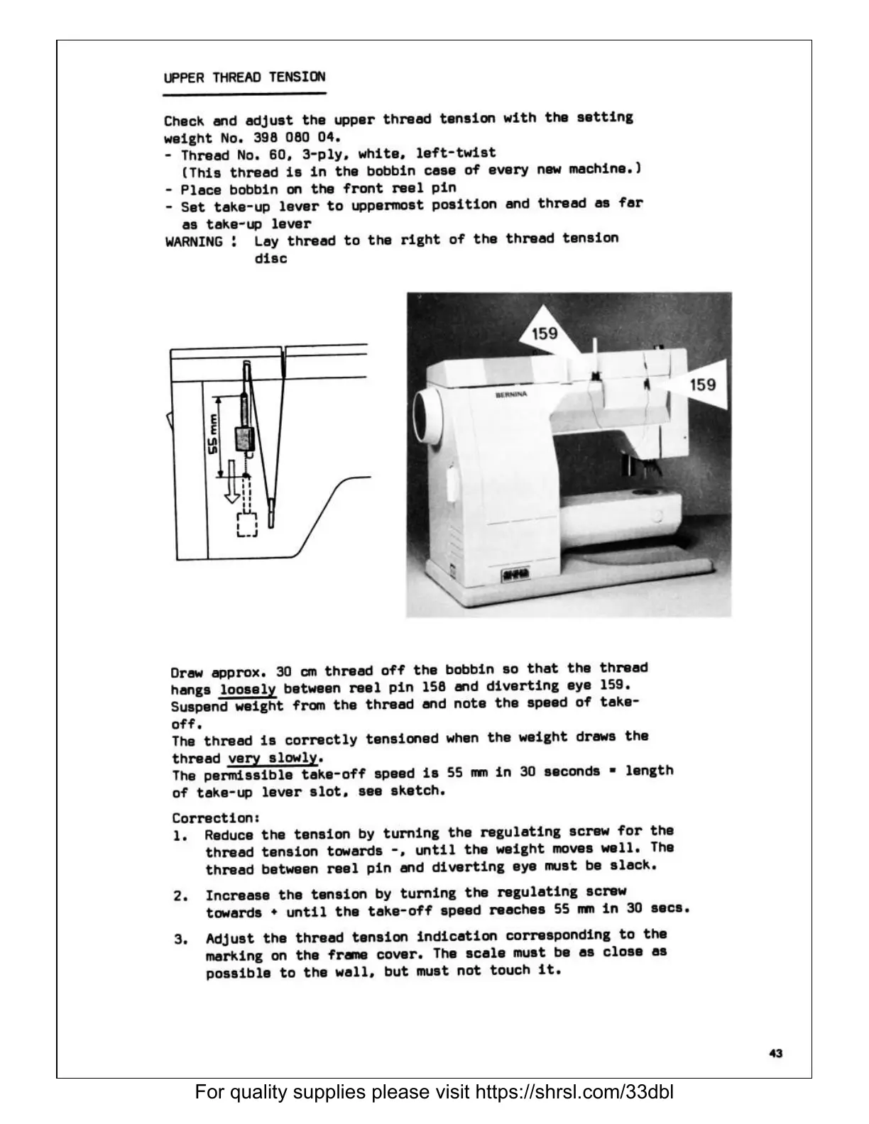 Bernina 932 - Thread Tension Adjustments; Upper Thread Tension Adjustment