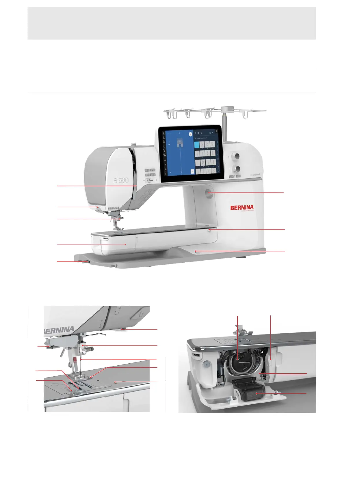 1Embroidery Module Connection 2Bobbin Cover 3Needle Area 4Thread Cutter 5Thread Take-up Lever