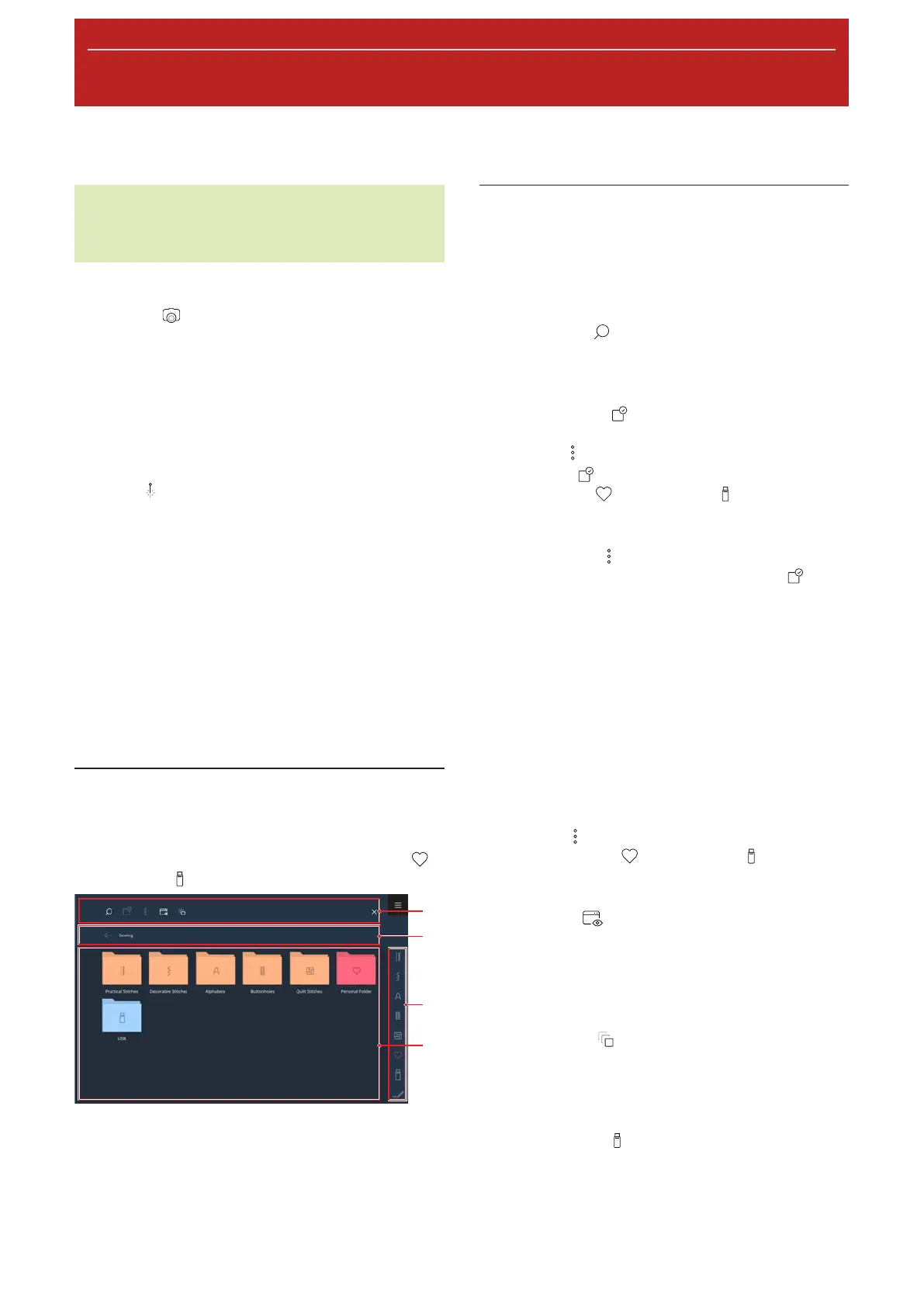 of the sewing area by tapping the icon.