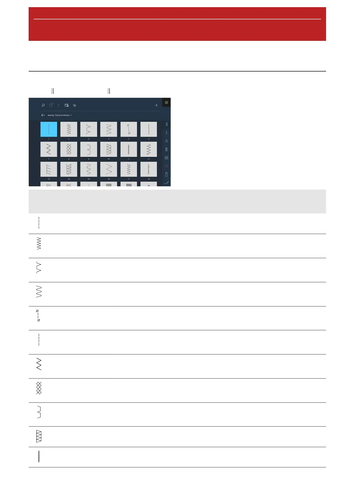 1 Straight Stitch For joining seams, for topstitching and basting.