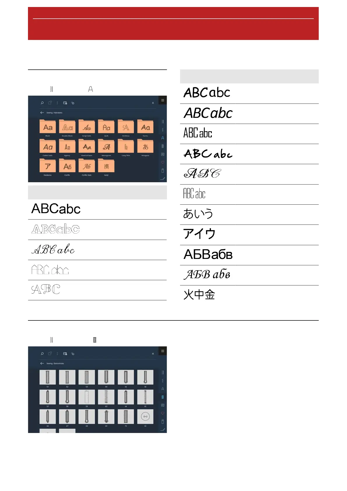 Bernina 990 - 5.3 Alphabets; 5.4 Buttonholes