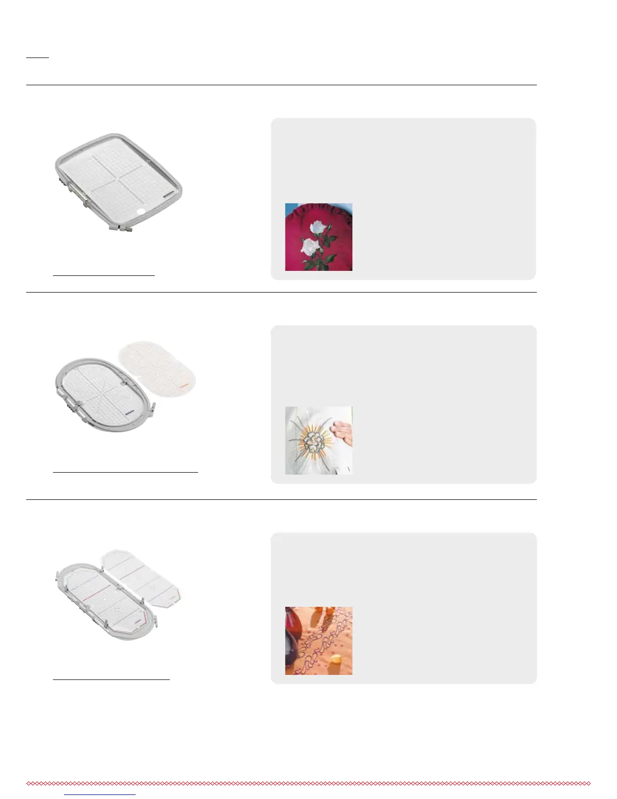 design combinations, and borders. Potential embroi-