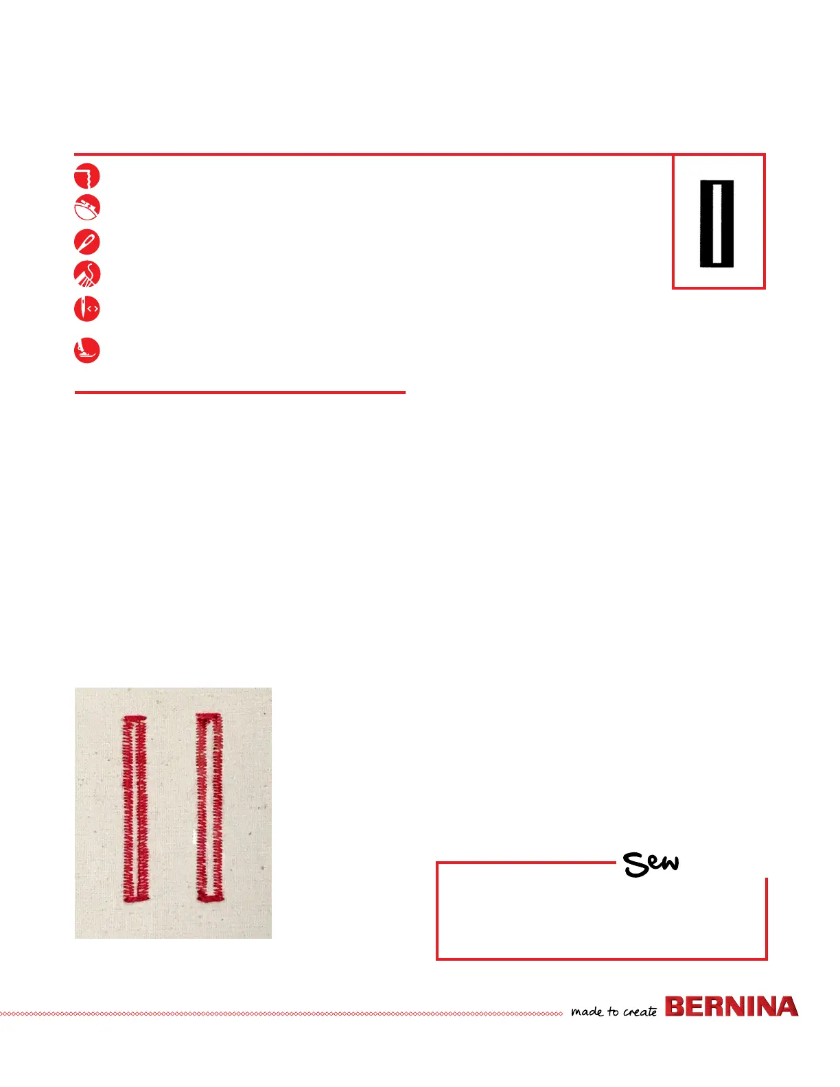 3. Sew the rst step of the buttonhole. Stop at the second