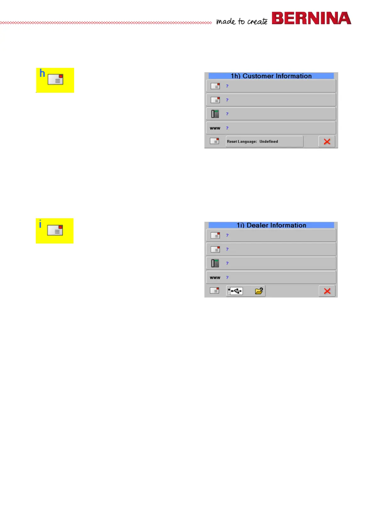 • Dealer data can also be read and entered in .txt format from BERNINA USB data stick.