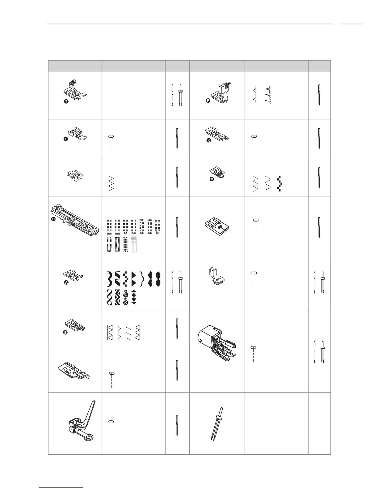 Presser Foot Application Chart - model 25