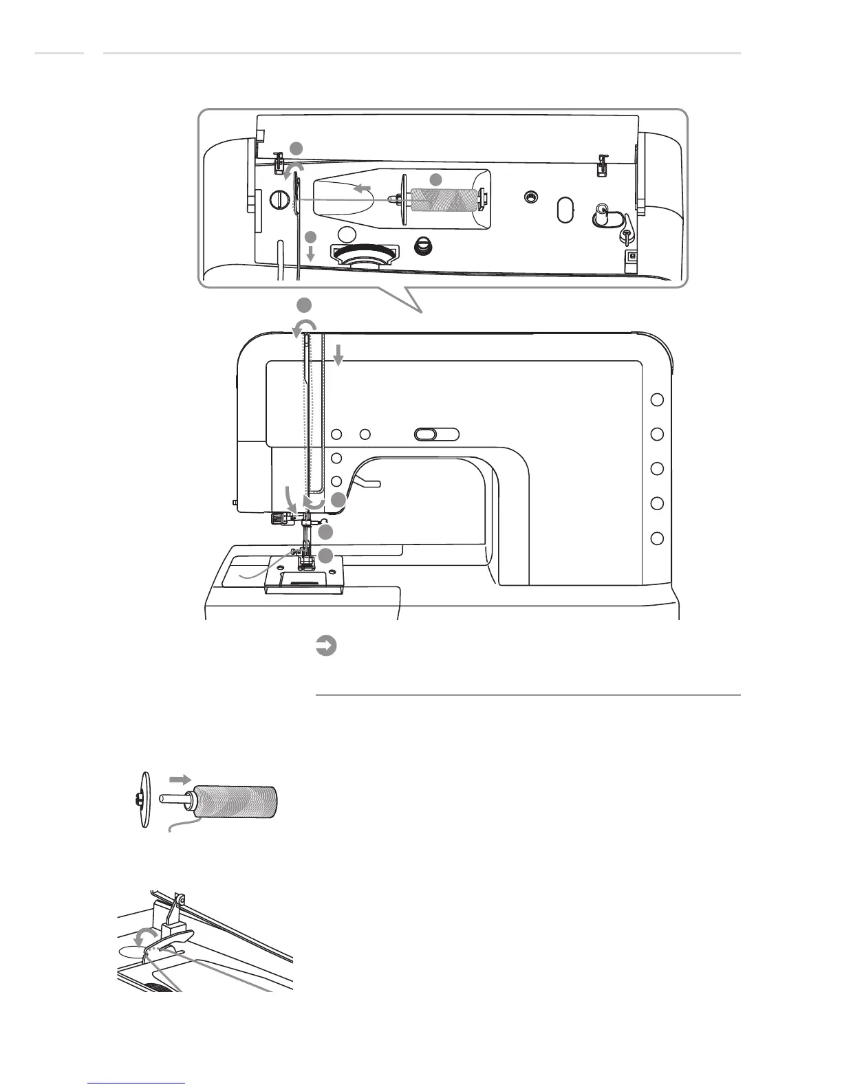 1. Place the thread and spool holder onto the spool pin.