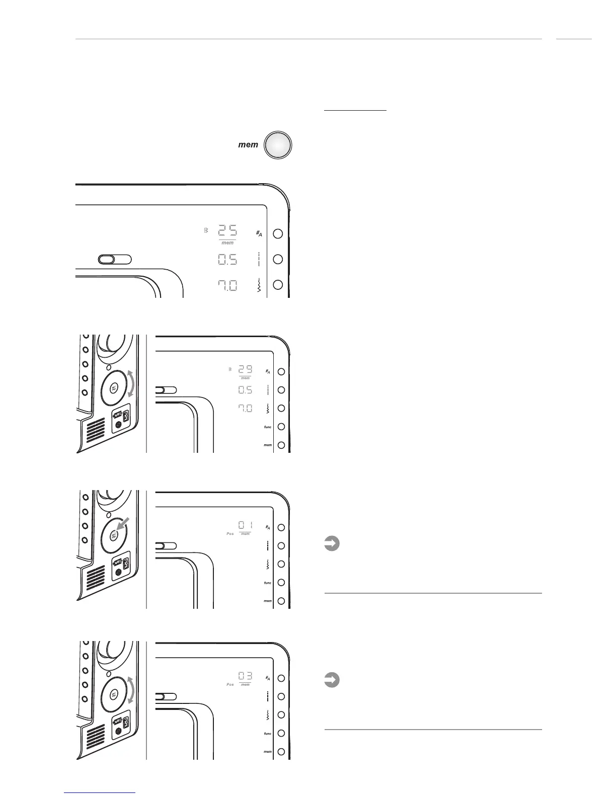 shows the stitch of the 1st memory position.
