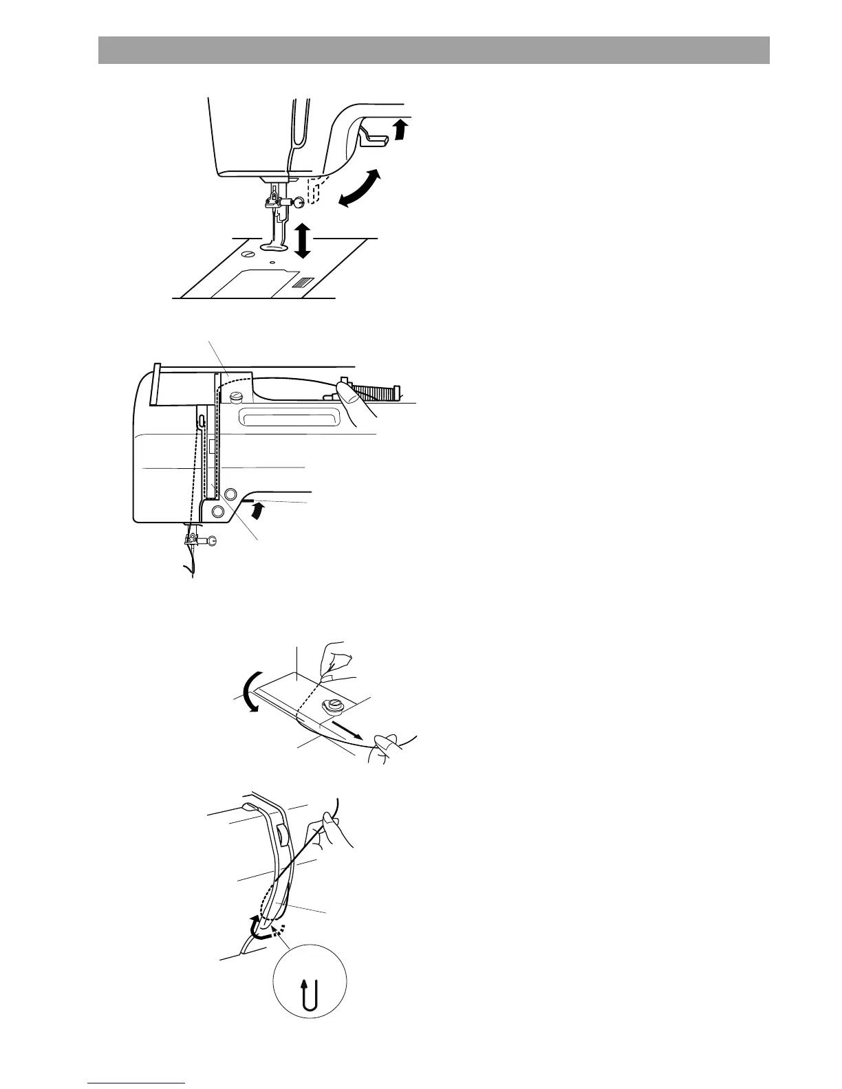 Raise the presser foot lifter. Turn the handwheel counterclockwise to