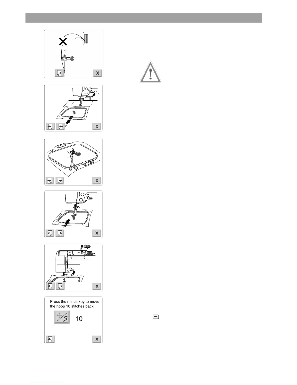 The last screen reminds you to move back several stitches in