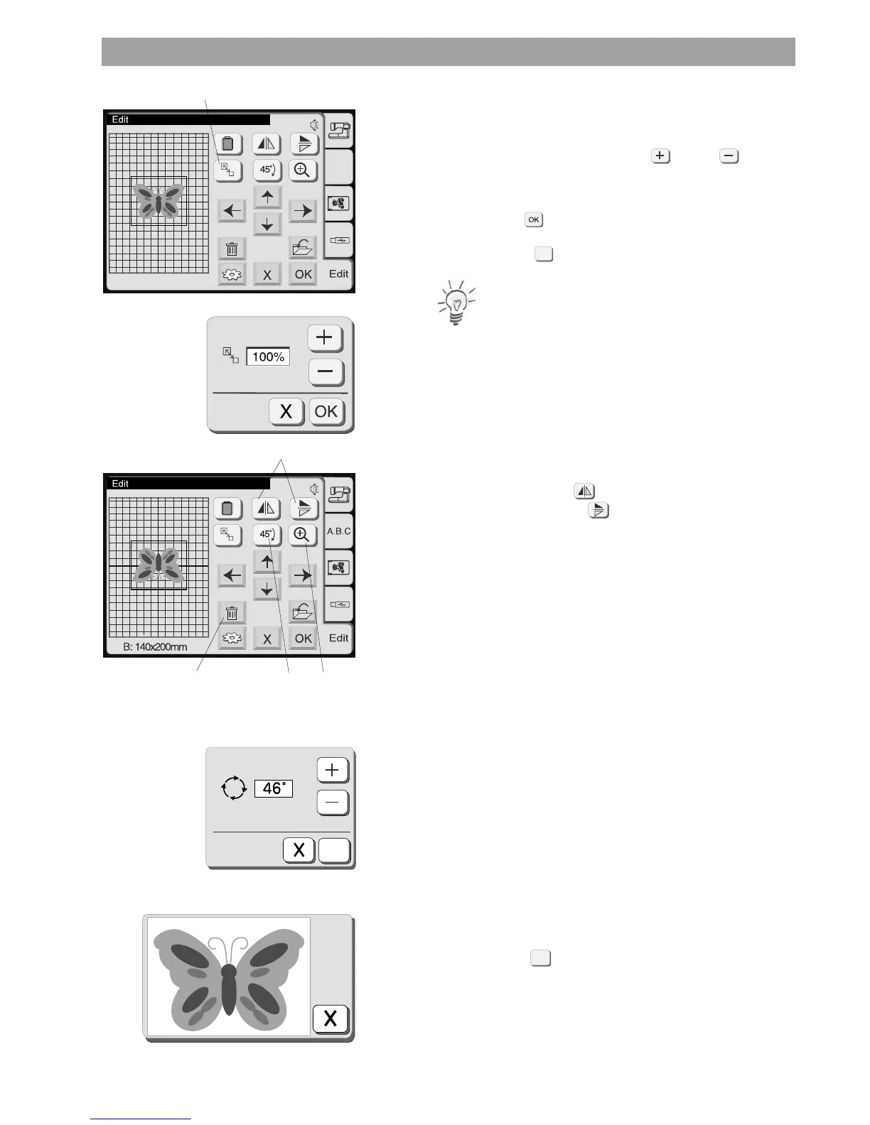 • Pressthepluskeytorotatethepatterninstepsof1ºclockwise.