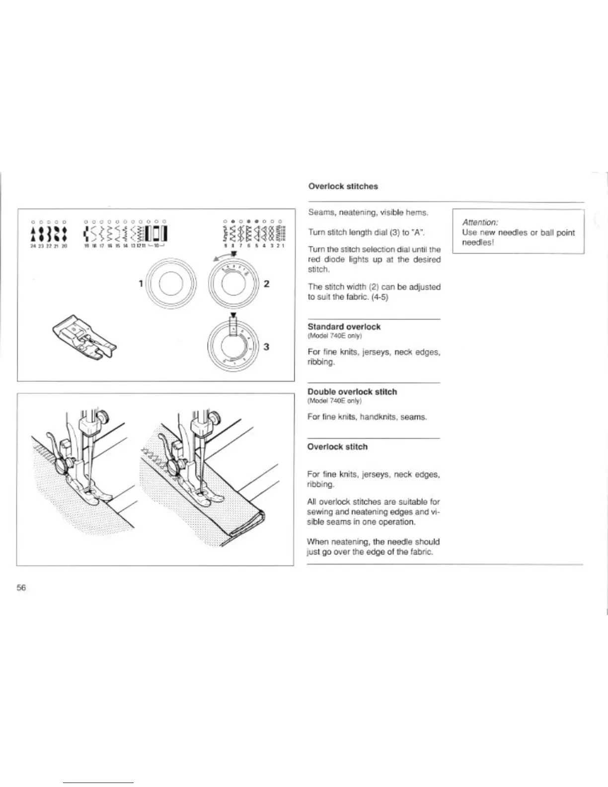 Bernina Bernette 715 - Overlock Stitches; Standard Overlock (Model 740 E); Double Overlock Stitch (Model 740 E)
