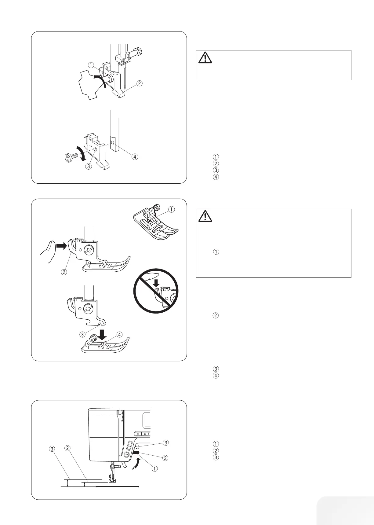 Turn OFF the power switch before changing the foot.