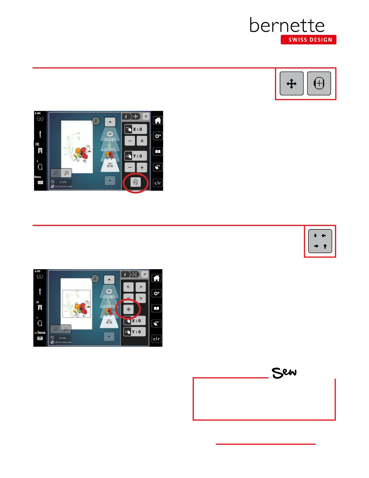 position of a design within the hoop, use this feature to conrm that the design will stitch in the correct