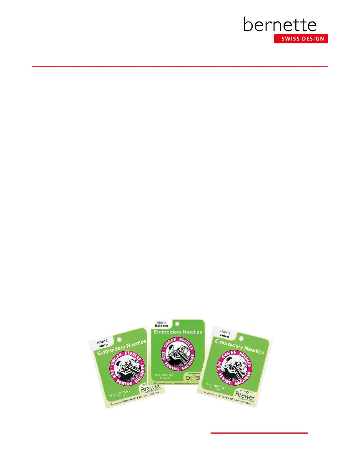 • Occasionally other needles may be recommended for specially digitized techniques, such as a Wing Needle for heirloom