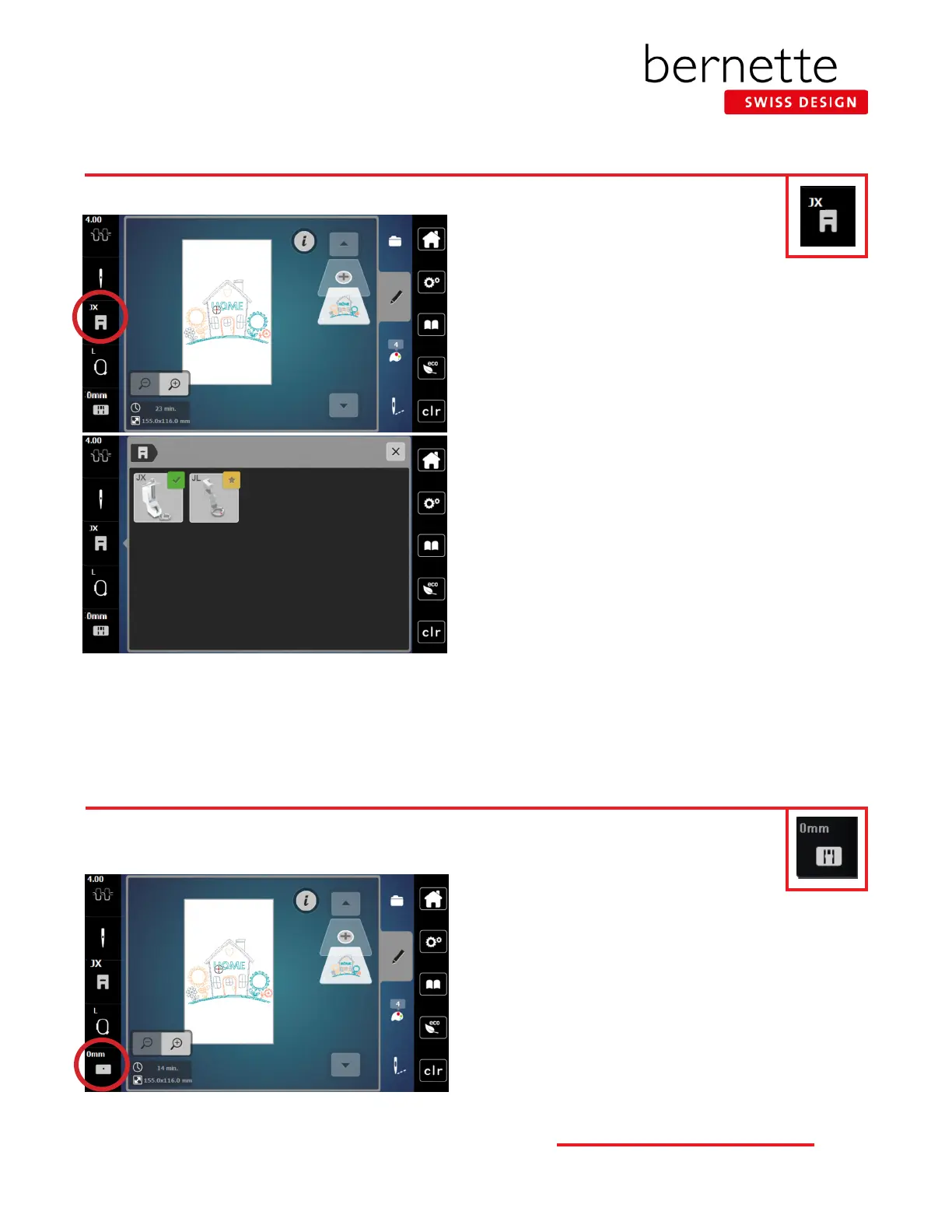 When embroidering, the machine will show a recommended presser foot sole in the Presser Foot Display.
