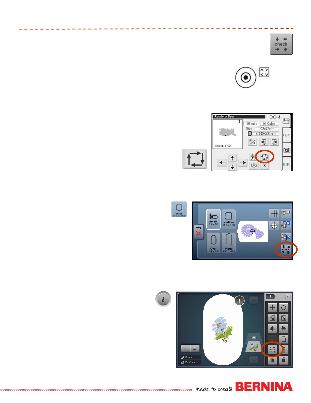 Check confirms the stitching field of the motif. After the