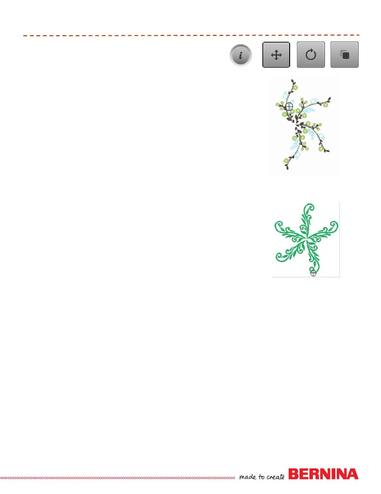 Rotate second motif 70º using the stitch width knob and move into place