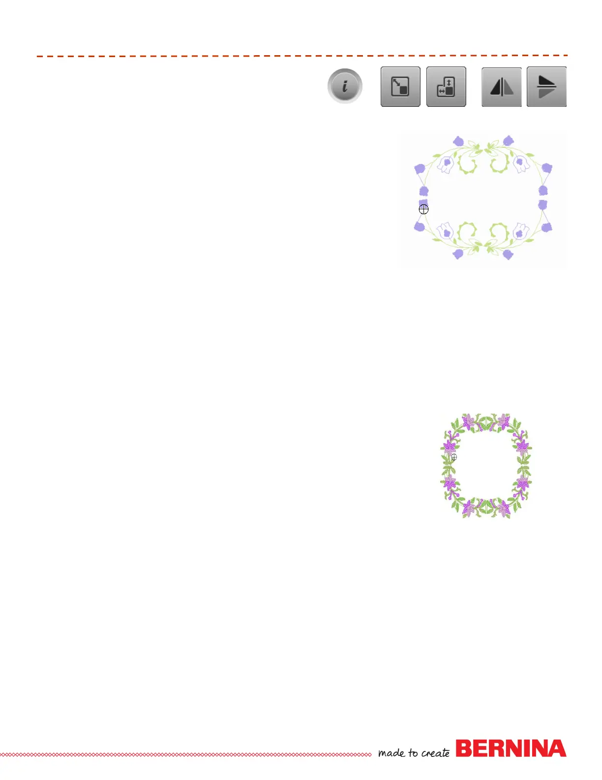 Select “i” breadcrumb; select Rotate Motif; use the stitch width knob to