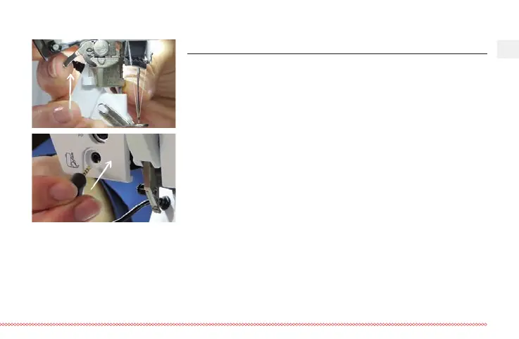 Ved aktivert BSR funksjon starter symaskinen når stoffet