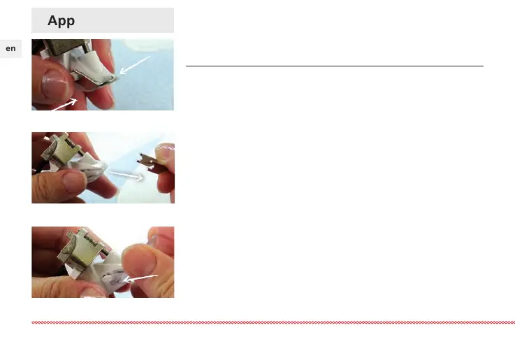> Pull the attached presser foot sole diagonally downwards