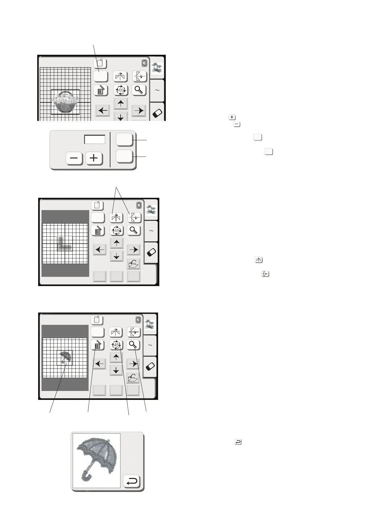 Each time you press the rotation key, the embroidery