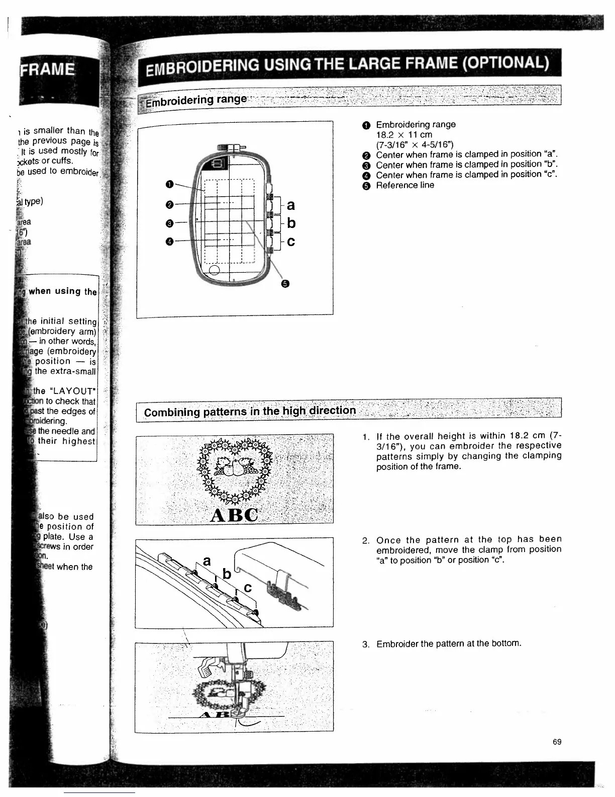Bernina Deco 650 - Embroidering Using the Large Frame (Optional); Embroidering Range; Combining Patterns in the High Direction