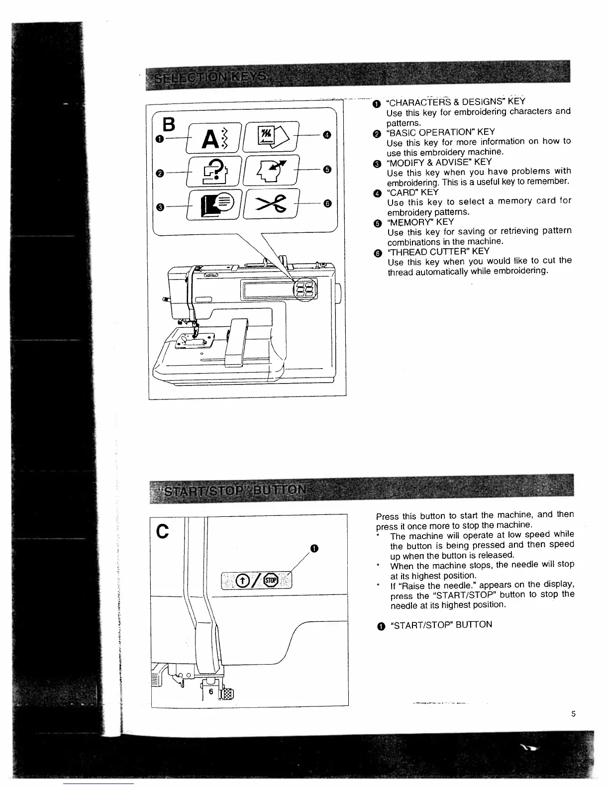 Bernina Deco 650 - Selection Keys; Start;Stop Button