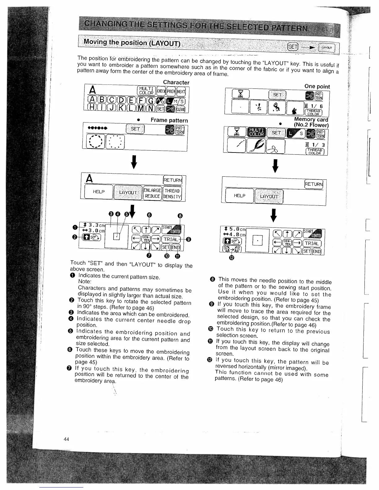 Bernina Deco 650 - Changing the Settings for the Selected Pattern; Moving the Position (LAYOUT)