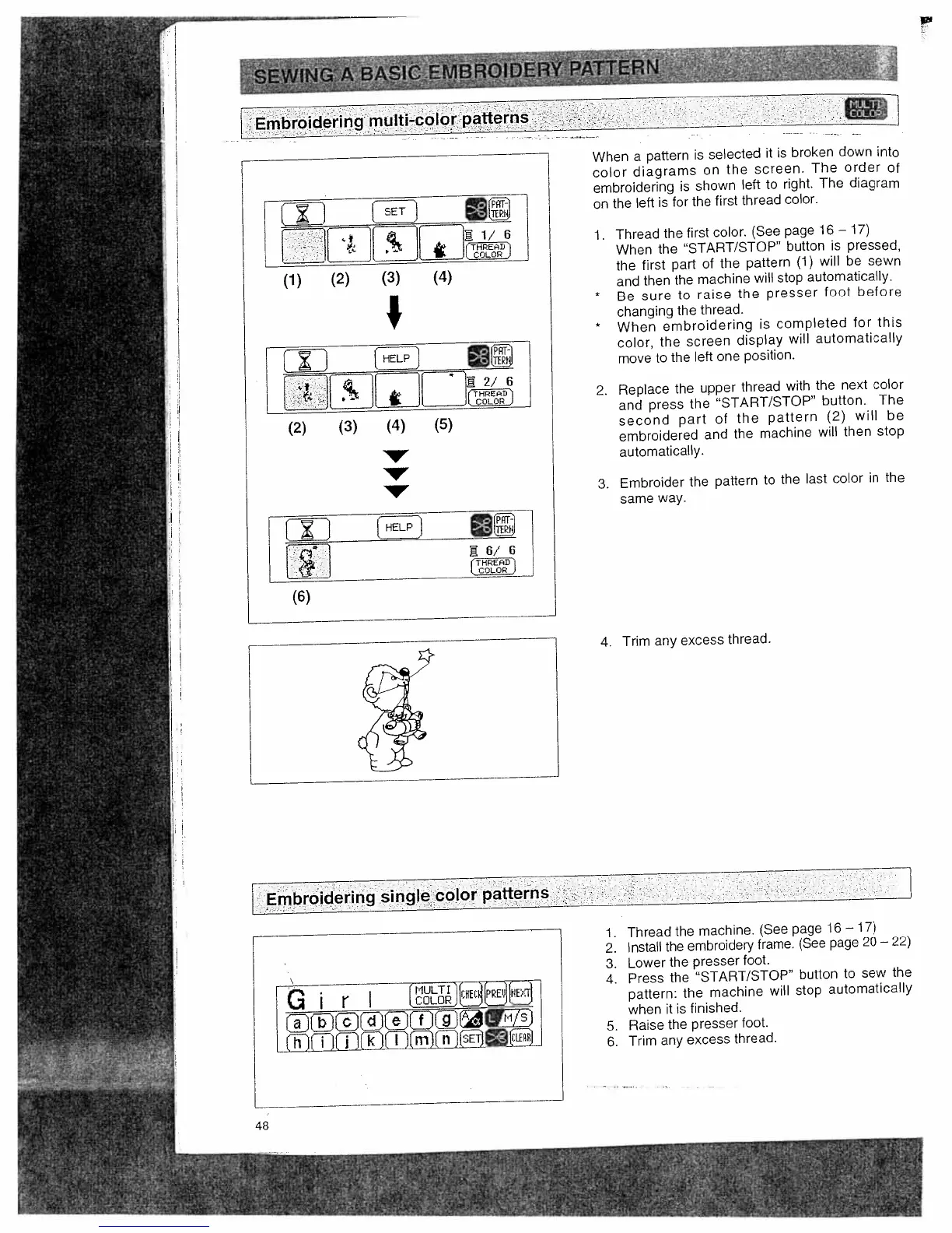 Bernina Deco 650 - Sewing a Basic Embroidery Pattern; Embroidering Multi-Color Patterns; Embroidering Single Color Patterns