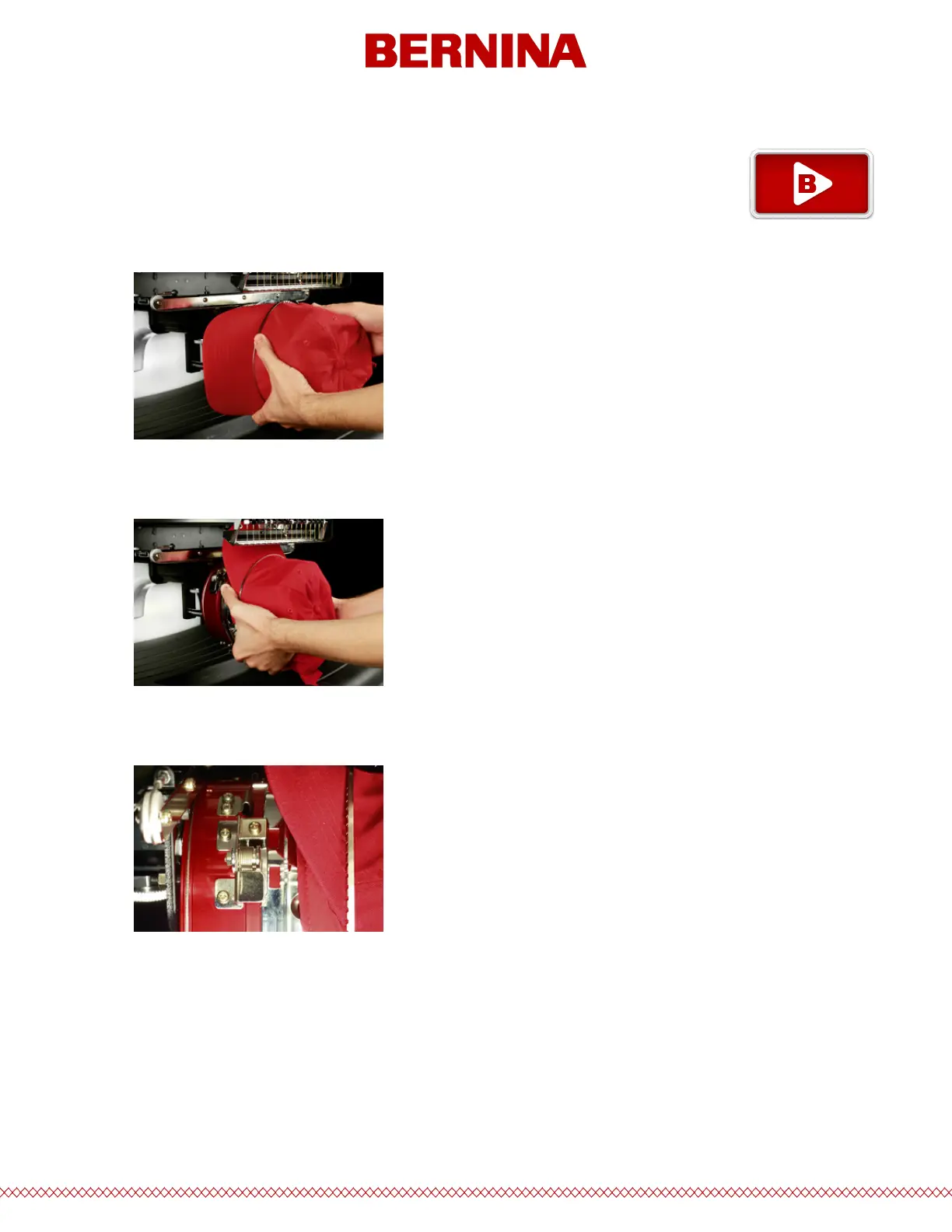1. Rotate the hooped cap 90° to allow the bill to pass under the needle case.