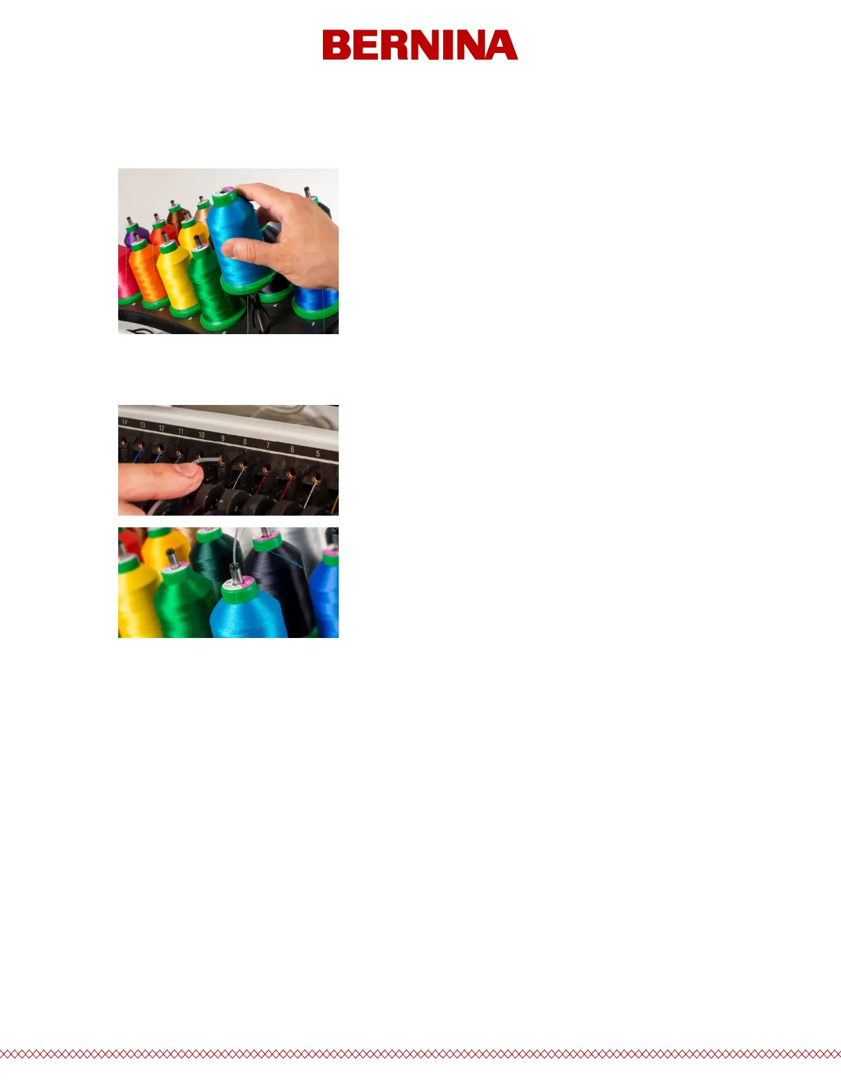 1. To start a new cone of thread, push the plastic thread tubes up from behind the thread tree. Place the