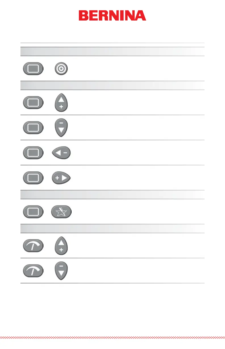 Adjustment + Down Arrow: Decreases sew speed