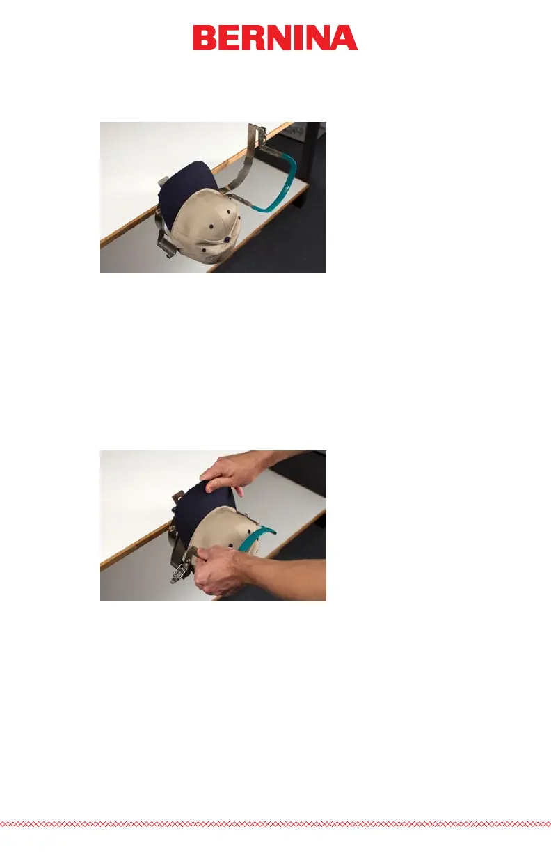 4. Slide the prepared cap onto the cap frame with the visor pointing