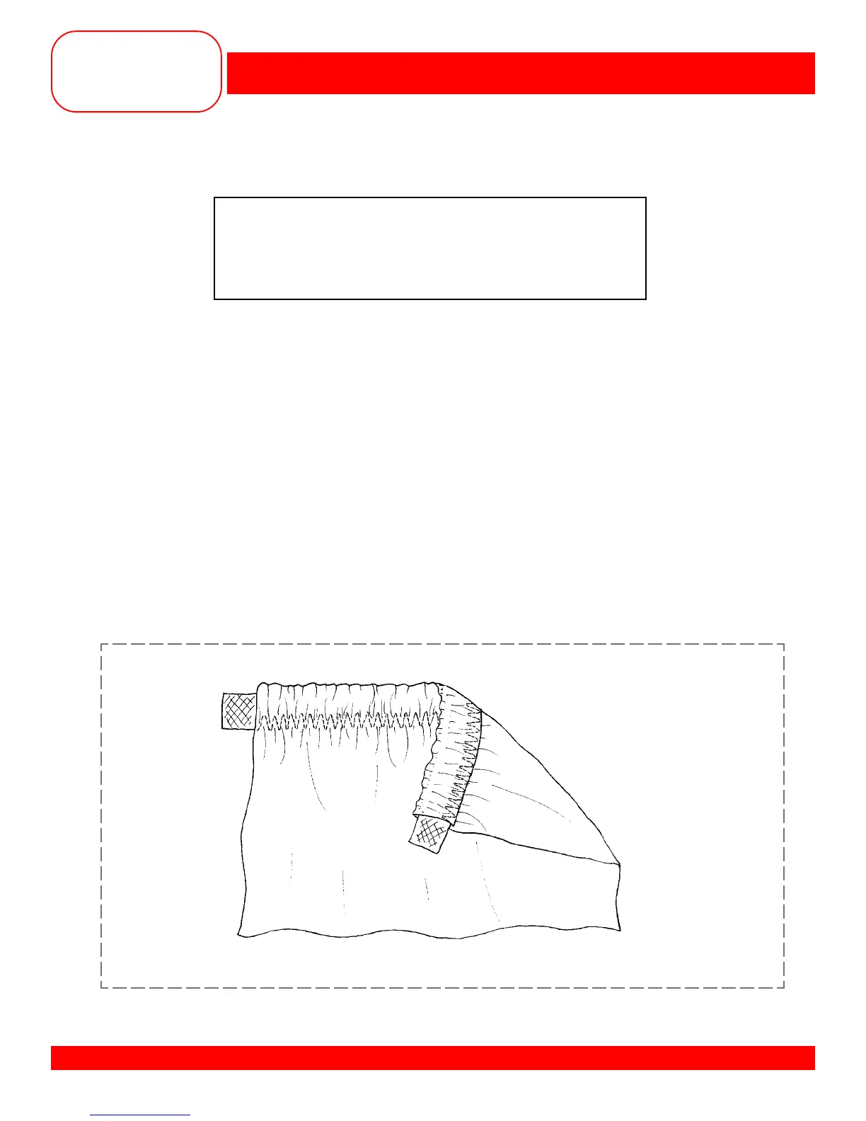 • Position the elastic on the wrong side of the fabric, along one 6” edge.