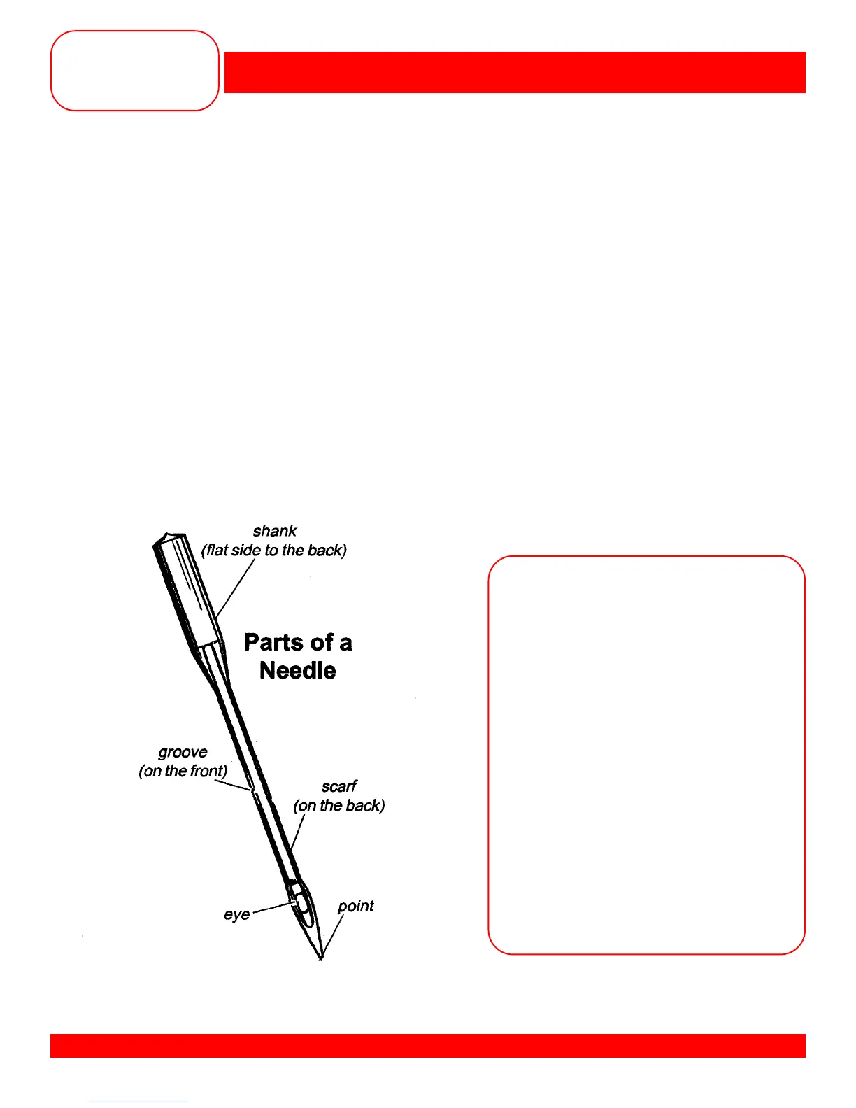 to fabrics can be traced to a bent, damages, or incorrect size or type needle. Approximately 60% of all