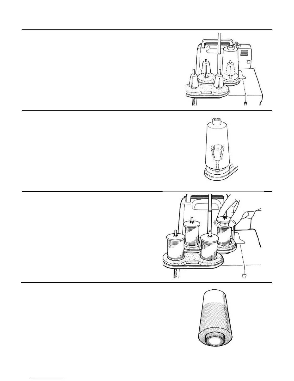 Remove the anti-vibration cones. Place spools on spool