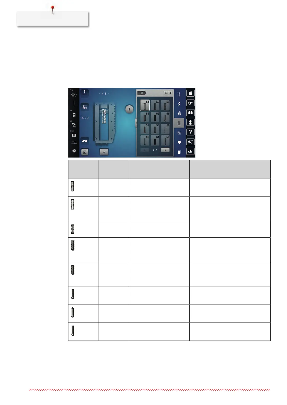 51 Standard buttonhole For light to medium-weight fabrics. e.g.