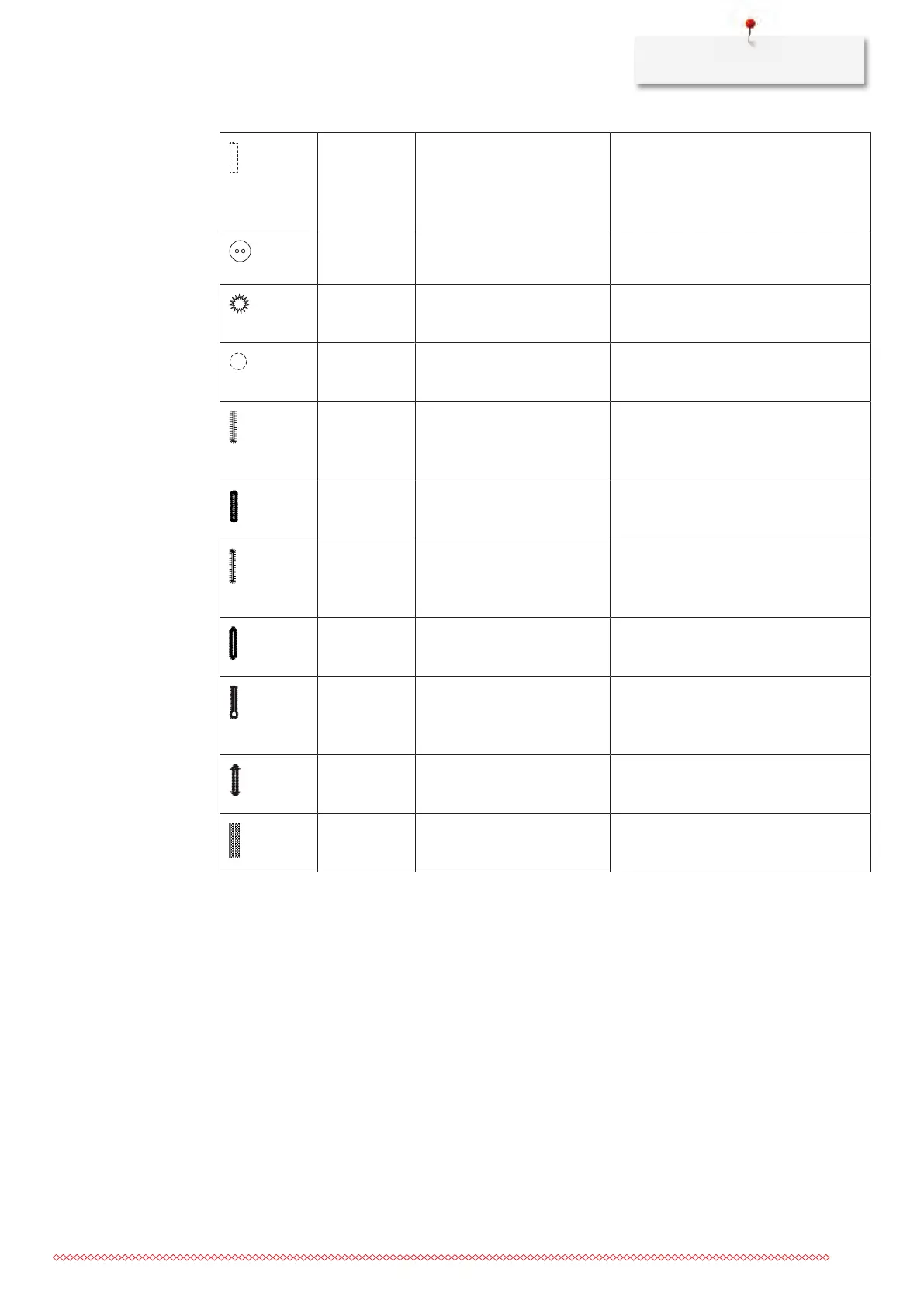 62 Eyelet with straight stitch Openings for cords or narrow ribbons