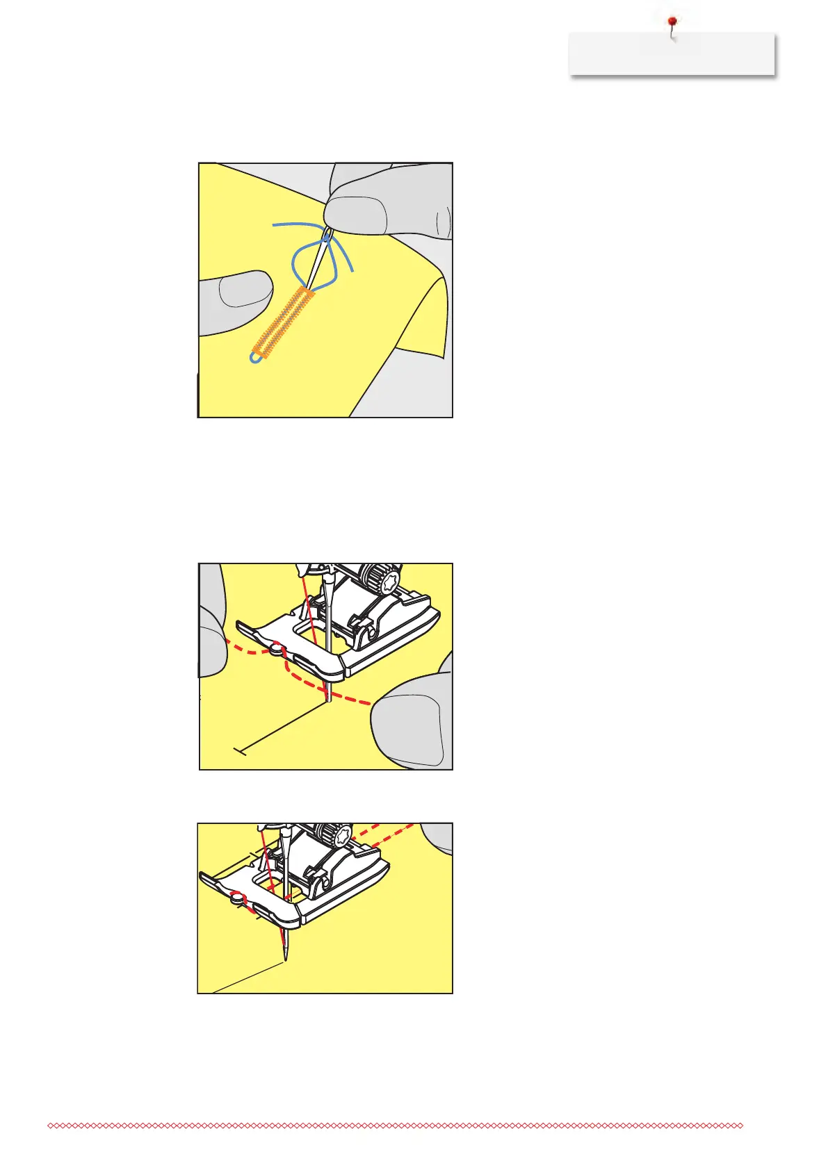 > Hook the cord over the pin at the back of the buttonhole foot.