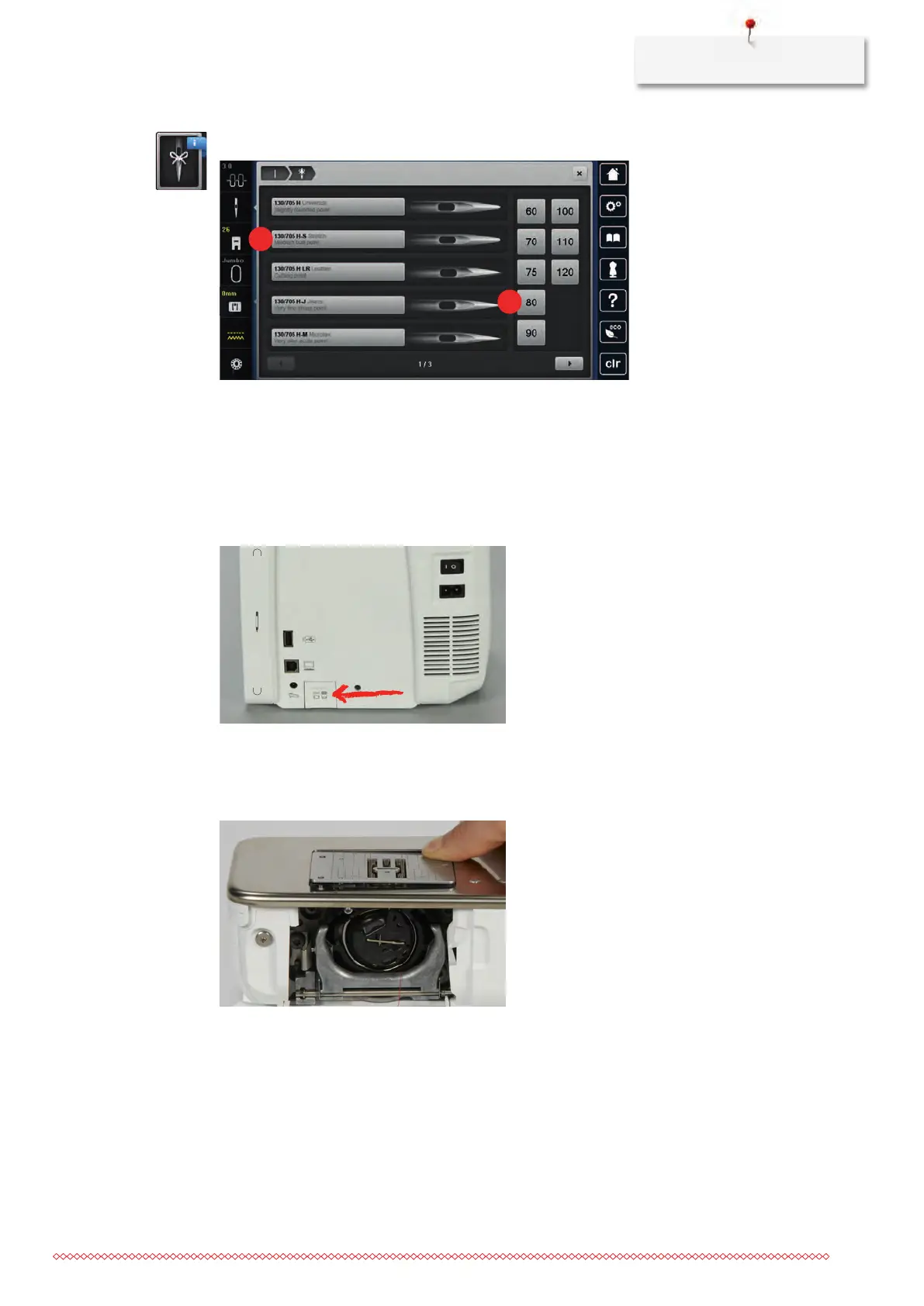 > Select the needle type (2) of the fitted needle.