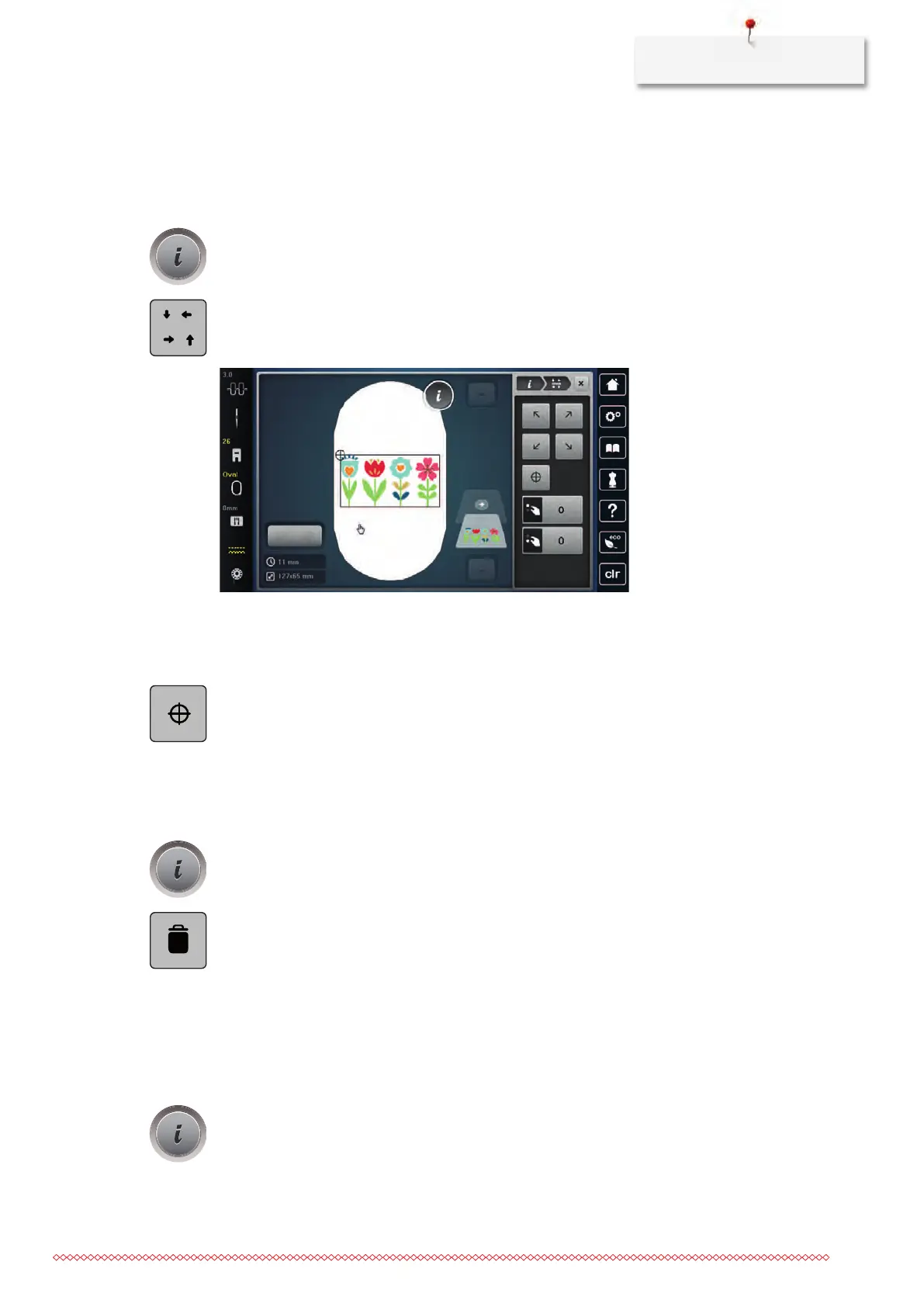 display. If the embroidery motif hasn't been positioned correctly yet, the position can be altered via
