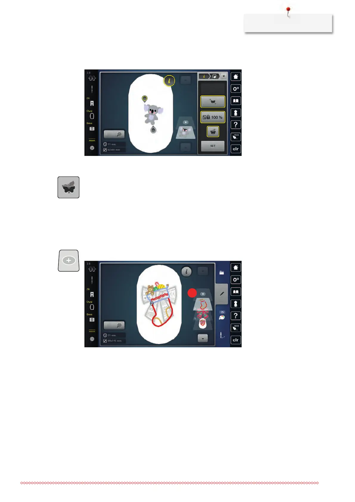 – The point changes color and is set. The embroidery motif is adjusted accordingly.