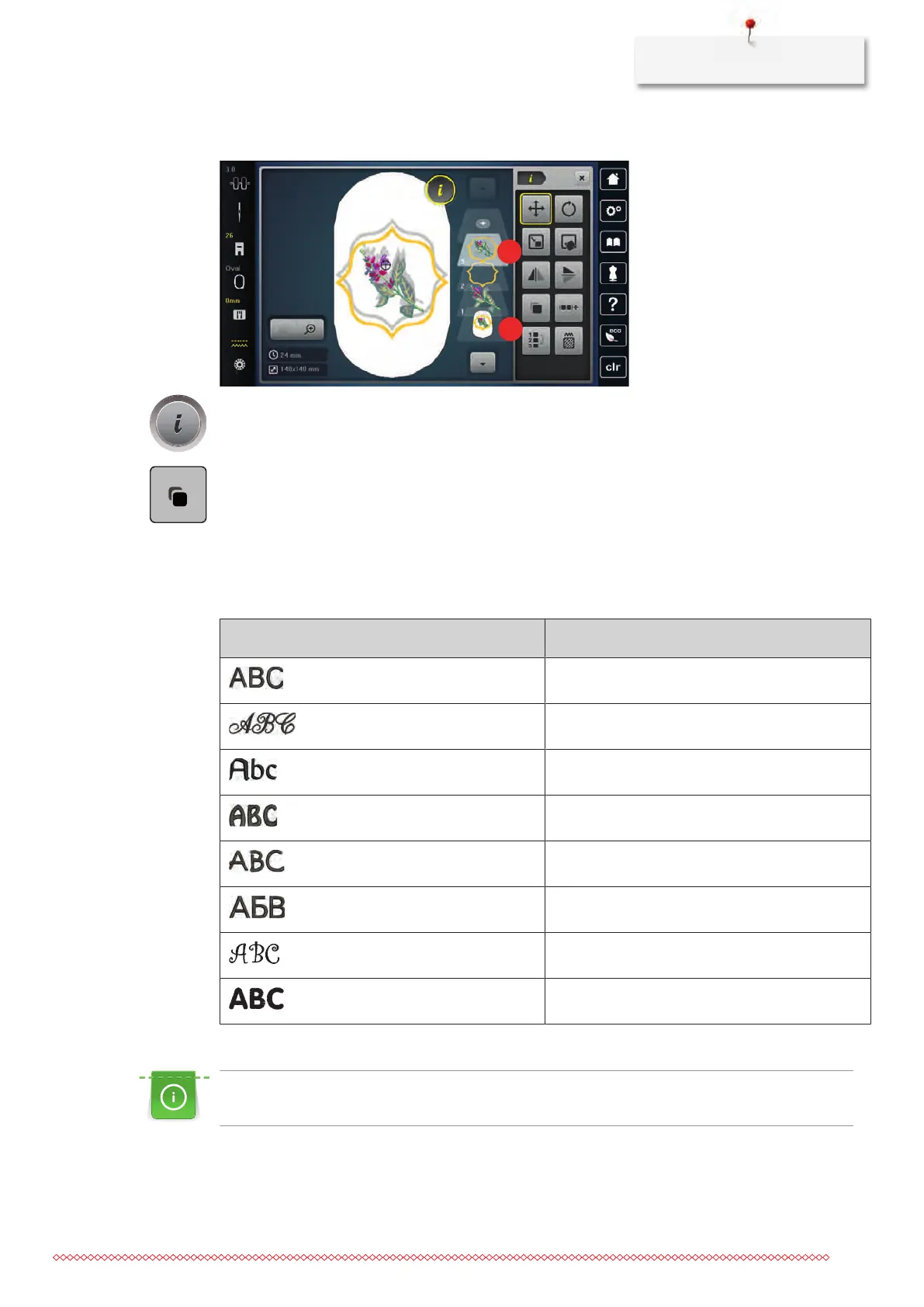 Bernina Kaffe 770 QE PLUS - Creating Lettering; Overview Embroidery Alphabets; Creating Words;Sentences